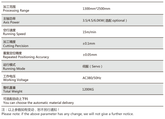 ◆7.5KW恒功率主軸,切面光潔,速度快??梢坏肚懈?0-30mm有機(jī)玻璃。